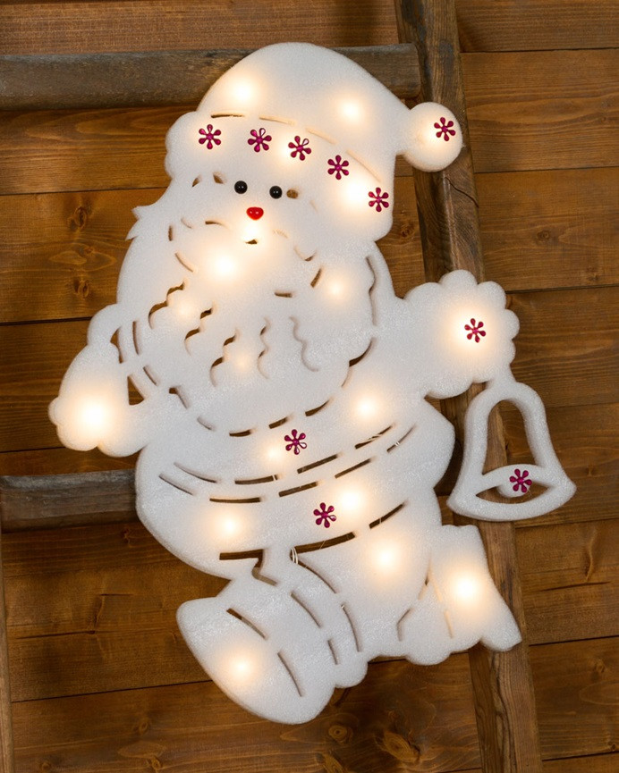 Babbo Natale Spugna con 20 Led CLASSIC SPONGE a luce fissa e flashing a batteria, dotato di micro controller e cavo trasparente. Ideale per decorare qualsiasi punto lontano da prese elettriche e dare un tocco originale a finestre, porte, vasi e alberi di Natale. DA INTERNO