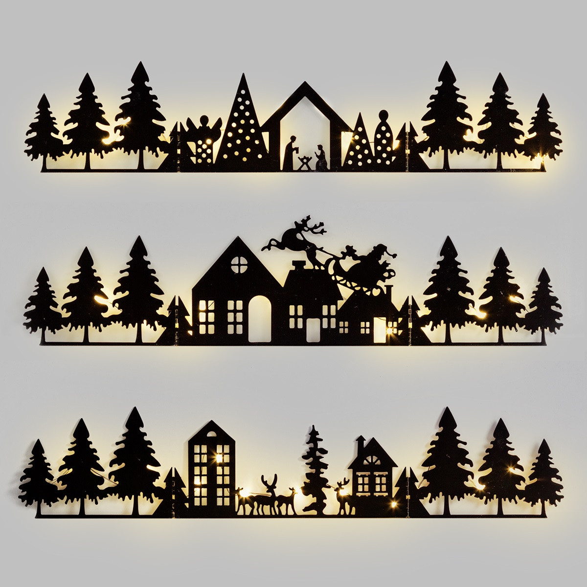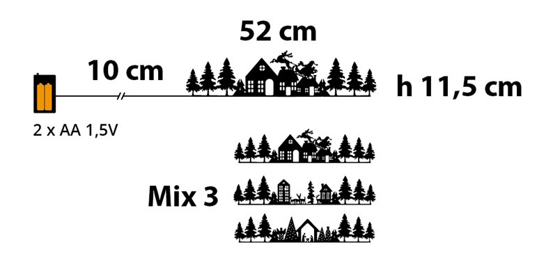 3 paesaggi assortiti prezzo paesaggio singolo Decorazione da appoggio Xmas Landscapes Paesaggio 52cm Mix3 Modelli serie LDS 3 moduli orientabili e richiudibili in Metallo Nero, 15 MicroLED BIANCO CALDO, Luce Fissa, Timer Giornaliero 8 ore On (16 ore Off) escludibile con selettore Off-Timer-On, a Batteria 2xAA 1,5V (non incluse), uso Interno Portatile,
