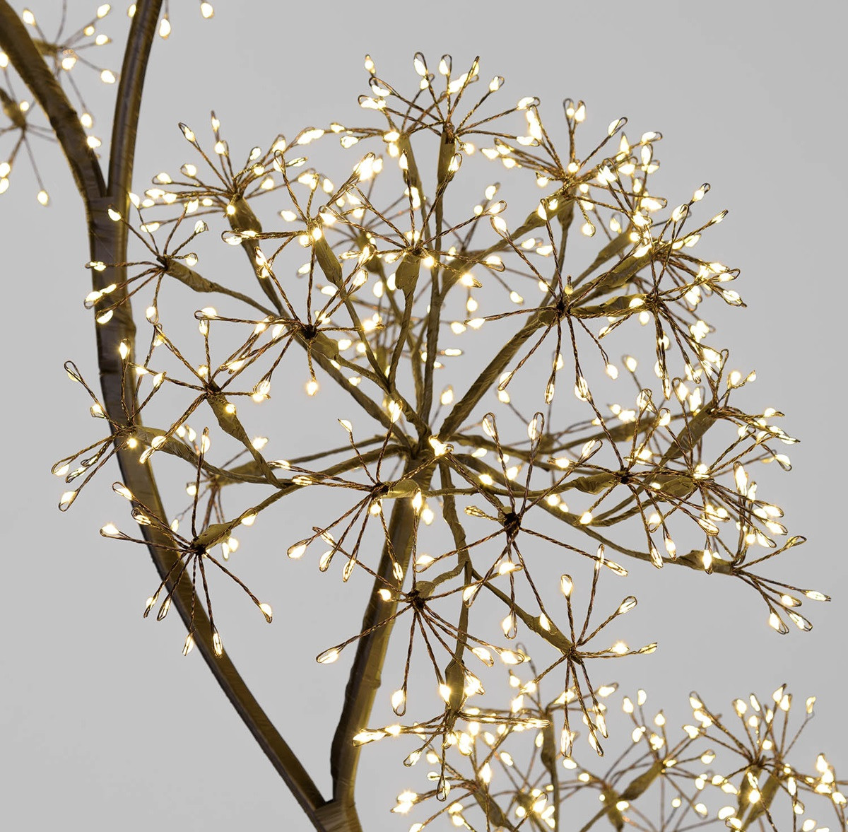 Albero Ramo 5 Sfere ø20cm RICH Nero H120cm 1200 MicroLED BIANCO CALDO ø1,5mm, serie RICH Ricco a Ciuffi di Long Leg Led con gambo di 3cm, Cavo Nero Metal Black, gioco di luce automatico FlashLED Diamond (1080 led a luce fissa + 120 led Flash lampeggio veloce), Base in Metallo (asportabile), Rami Modellabili con anima in metallo, Trasf. SELV di sicurezza, IP44 uso Esterno e Interno, Cavo Alim. Nero 5m