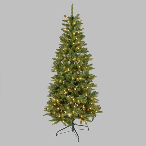 Abete Slim Prelit mod. LS H180xø86cm PVC+PE Verde 300 LED BIANCO CALDO ø5mm Reflex, Rami mix di diversa forma e colore, 803 punte (165 PE), apertura Hinged con rami snodabili non asportabili, Piedistallo a croce richiudibile in metallo, Memory Controller Luce Fissa + 7 giochi luce + Timer Giornaliero 8 ore disinseribile con Pulsante Luminoso integrato nel Trasf. SELV di Sicurezza, IP44 Esterno e Interno, Cavo Alim. Verde 4m