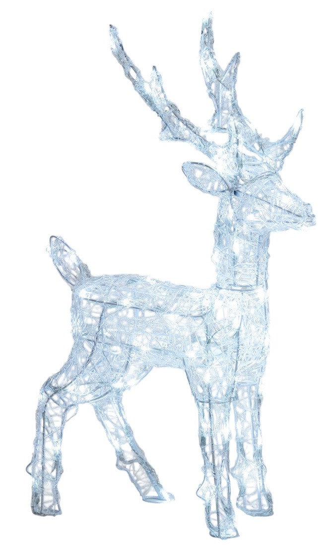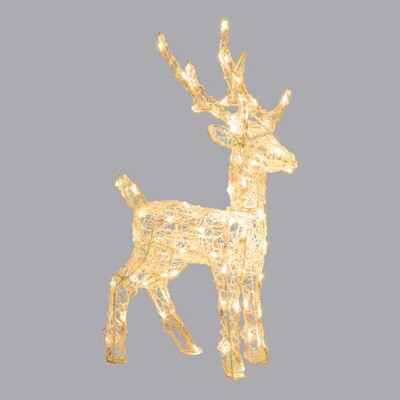 Renna 3D H65cm Acrilico Morbido 80 Dual LED BIANCO CALDO + BIANCO ø5mm, 3 COLORI selezionabili a Luce Fissa Caldo / Freddo / Mixed, SFN Soft Acrylic Net, Telaio metallo verniciato Bianco, Trasformatore SELV di Sicurezza con Timer Giornaliero 8 ore On (16 ore Off) disinseribile tramite Pulsante Luminoso, IP44 uso Esterno e Interno