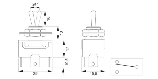 Deviatore a levetta 15A ON-ON Terminali a faston 6.3mm ottone