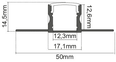 Kit profilo alluminio 2mt completo di cover satinata + 2 tappi chiusura